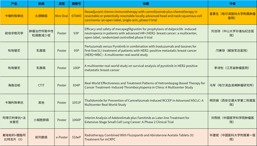 在头颈肿瘤、乳腺癌、肺癌、前列腺癌等多个疾病领域,卡瑞利珠单抗、阿得贝利单抗、吡咯替尼、氟唑帕利、法米替尼、醋酸阿比特龙片(II)等抗肿瘤新药相关研究一共入选了1项简短口头报告、4项壁报展示和1项电子壁报,彰显了凯时官网医药强劲的研发实力。