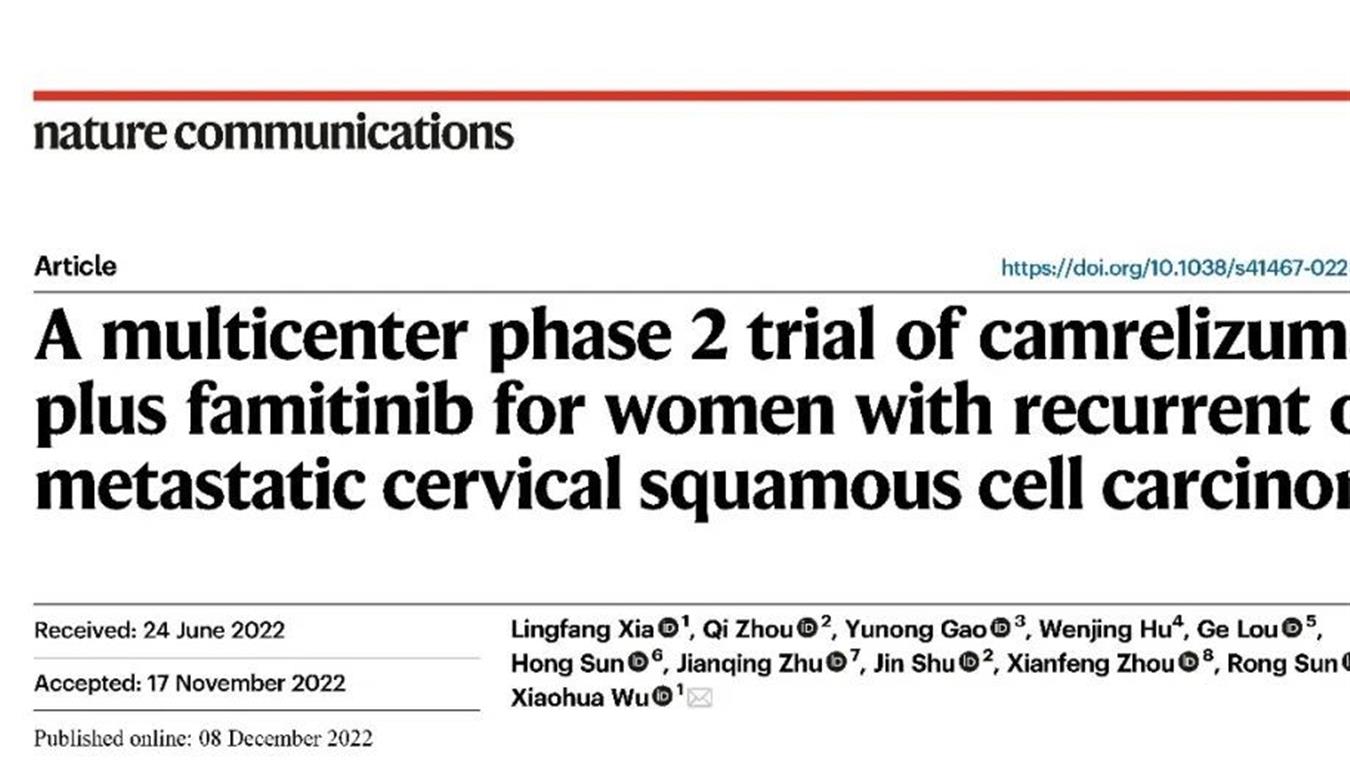 凯时官网创新药卡瑞利珠单抗联合法米替尼用于复发或转移性宫颈癌研究结果荣登JCO